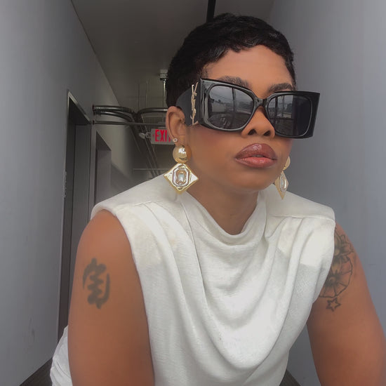 18k plated and silver mixed metal Earrings with yellow jewel setting