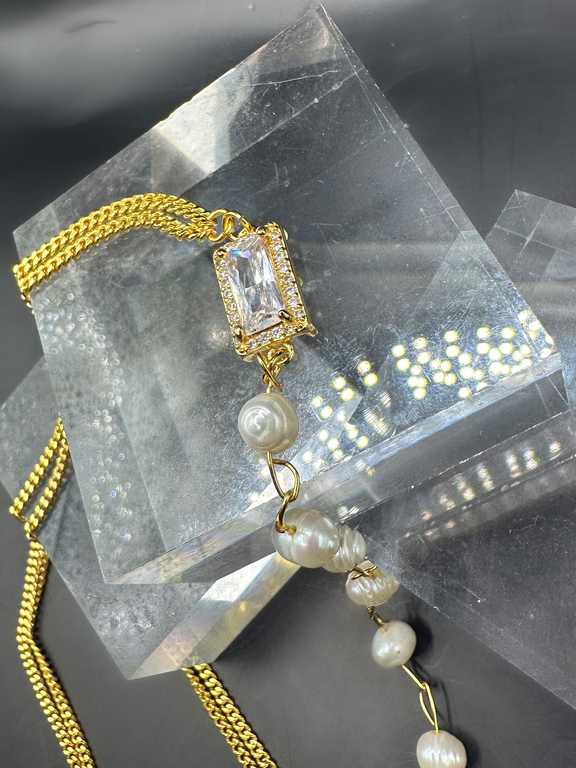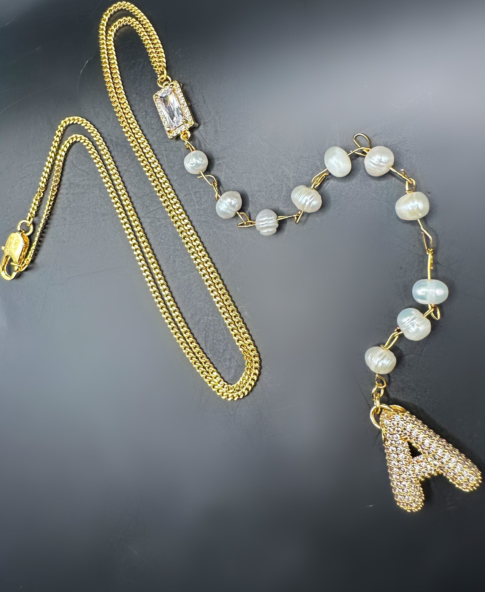 18k gold plated fresh water pearl necklace with CZ encrusted initials